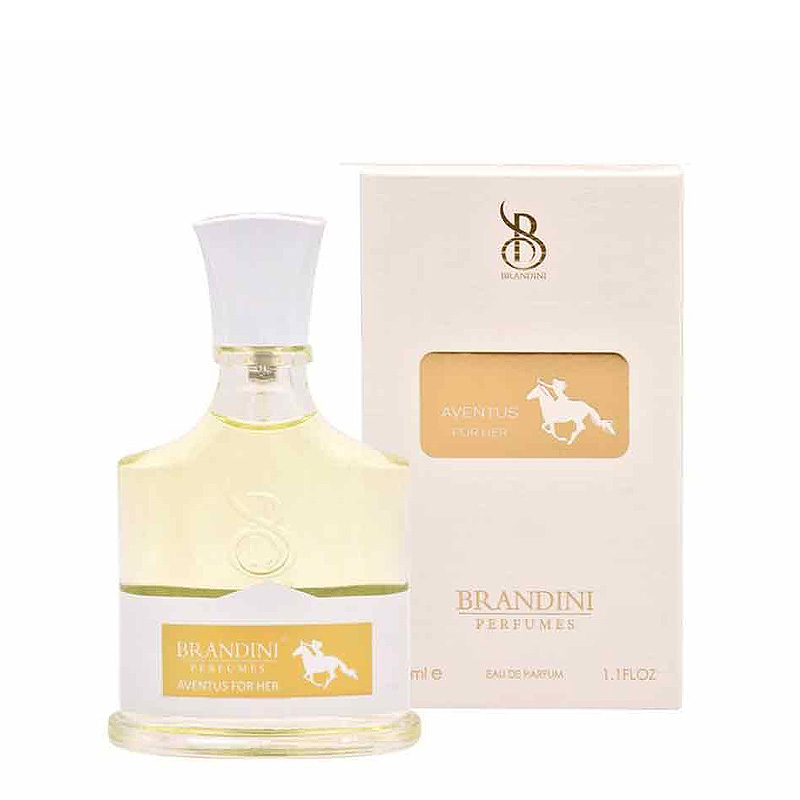 بطری این عطر با همان فرم کلی کرید Aventus اورجینال ساخته شده است. روی بطری، نشان تجاری برندینی به رنگ سفید و محو به شکل برجسته دیده میشود. در یک کادر طلایی رنگ نام برند برندینی و در زیر آن نام عطر را مشاهده میکنید. درپوش بطری به رنگ سفید است و در قسمت فوقانی آن یک قطعهی طلاییرنگ دارد. مایع درون بطری شفاف بوده و از روی شیشهی این عطر دیده میشود.