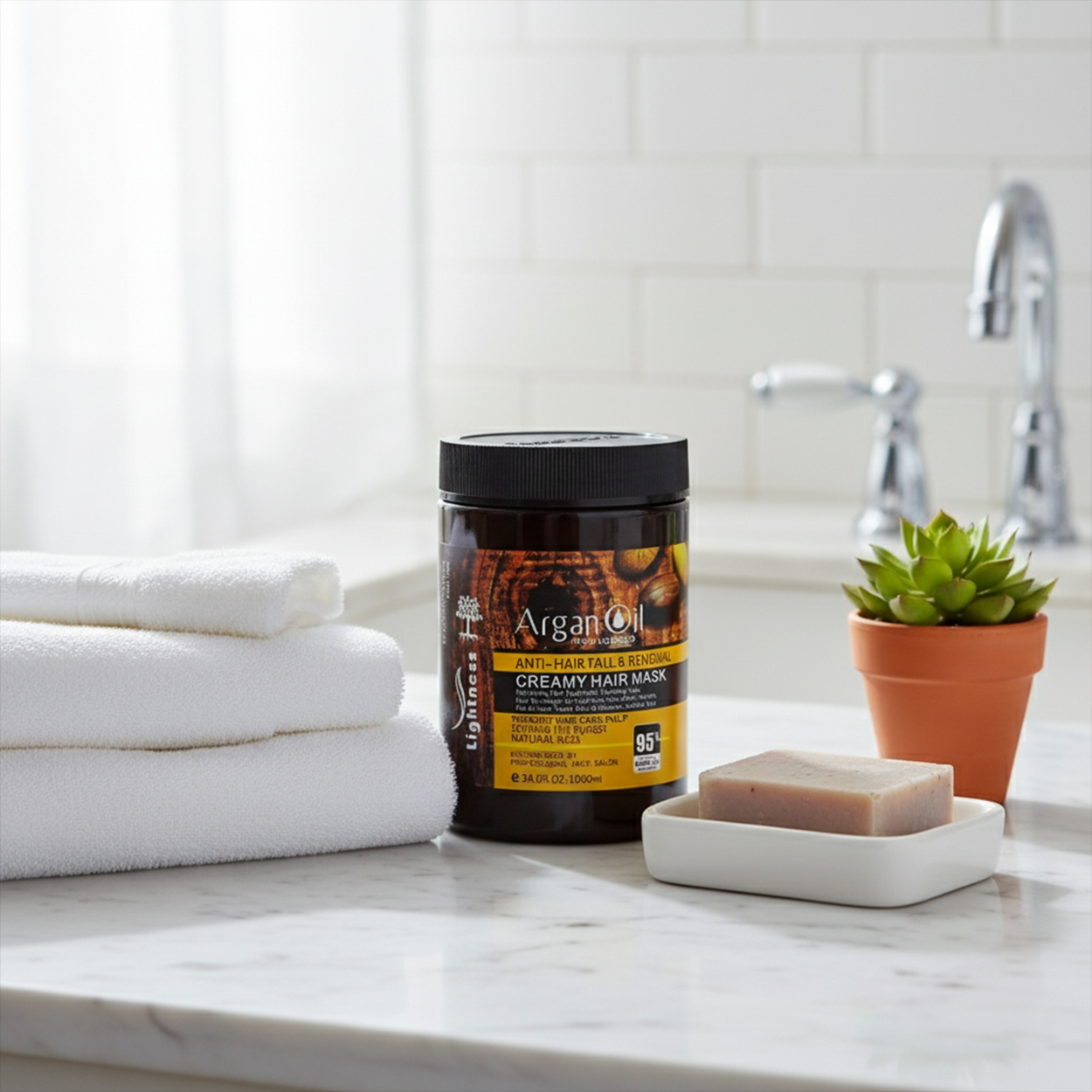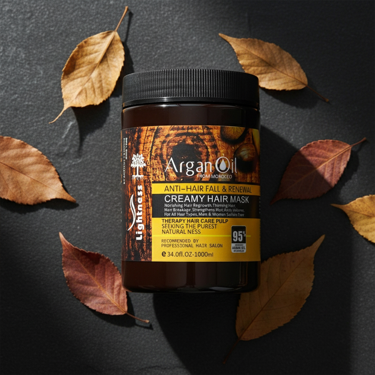 روغن آرگان دارای ویتامین E و اسیدهای چرب ضروری میباشد که موها را نرم و لطیف میکند و در تسریع بازسازی موهای خشک و آسیبدیده بسیار عالی عمل میکند. روغن آرگان یک درمان کنندهی طبیعی برای مو میباشد. این روغن برای رشد سریع مو و همچنین تقویت ریشه مو بسیار مفید است و معمولا به عنوان یک نرم کننده از آن استفاده میشود که با تغذیه ریشه موها باعث سفت شدن ریشه مو و جلوگیری از ریزش مو میشود. قیمت ماسک مو روغن آرگان لایتنس بسیار مناسب و مقرون به صرفه است.