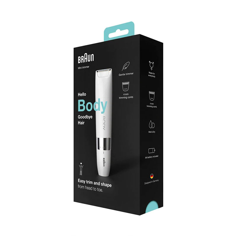 ماشین اصلاح بدن مینی بی اس 1000 براون دستگاهی کوچک با تیغههای بسیار تیز است که برای اصلاح موی بدن ساخته شده است این دستگاه برخلاف مدلهای دیگر ماشین اصلاح بدن، کوچک تر و قابل حمل است و مصرف کننده میتواند آن را همه جا با خود داشته باشد. این دستگاه کاملا ضد آب بوده و به راحتی قابل شستوشو است و هم برای بانوان و هم آقایان قابل استفاده است. از آنجایی که این محصول با استفاده از دست روی قسمتهای مختلف بدن کشیده میشود طراحی آن به گونه ای است که به راحتی در دست انسان جای بگیرد و باعث آسیب دیدن دست نمی شود و همچنین در مدت زمان طولانی، دست را خسته نمیکند.