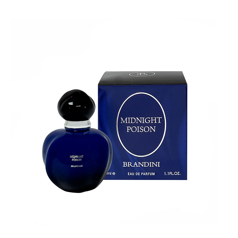 Brandini Midnight Poison ادوپرفیوم زنانه یک محصول مناسب برای تمامی بانوان است که به صورت 33 ml و 25ml تولید و به بازار ارائه شده است. فرمولاسیون این عطر با الهام از عطر دیور میدنایت پویزن طراحی شده و ماندگاری و قدرت پخش مناسبی دارد. عطر میدنایت پویزن برندینی با رایحه تلخ و شیرین و شرقی خود احساس سرزندگی را در زنان بیدار کرده و مناسب استفاده در مهمانی های شبانه و شبهای خنک و برفی پاییز و زمستان است.