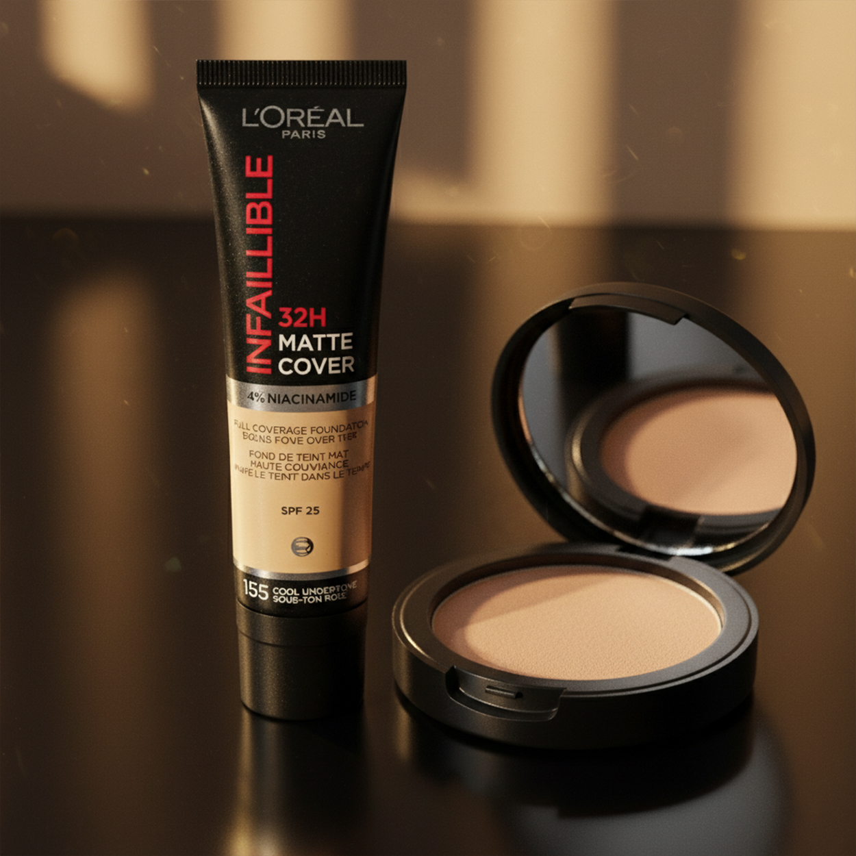 کرم پودر مات اینفالیبل 32 ساعته مات لورئال اصل، قدرت پوشانندگی بالایی دارد و جلوهای مات و یکدست در صورت شما ایجاد میکند. پرفروش ترین رنگ کرم پودر مات اینفالیبل 32 ساعته مات لورئال رنگ شماره 2 است که به هر رنگ پوستی جلوه مناسبی میدهد. کرم پودر مات اینفالیبل 32 ساعته مات لورئال خوبه زیرا از ماندگاری بالایی برخوردار است و بدون چسبندگی در چهره شما باقی میماند. خرید کرم پودر مات اینفالیبل 32 ساعته مات لورئال برای بانوانی که به دنبال یک آرایش بینقص هستند پیشنهاد میشود.