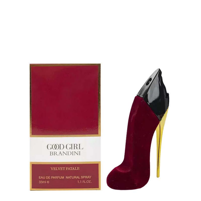 Good Girl Velvet Fatale Eau de Parfum for Women Brandini، سلاحی خطرناک و قدرتمند در دست بانوان است که توان تسلط بر هر ذهن تسلط‌ناپذیری را دارد. این رایحه اغواگر و وسوسه‌برانگیز، دل مرد آرزوهای هر بانویی را به آتش می‌کشد. گودگرل با معنای لغوی دختر خوب مخملی، نمادی از زیبایی بانویی جوان است.